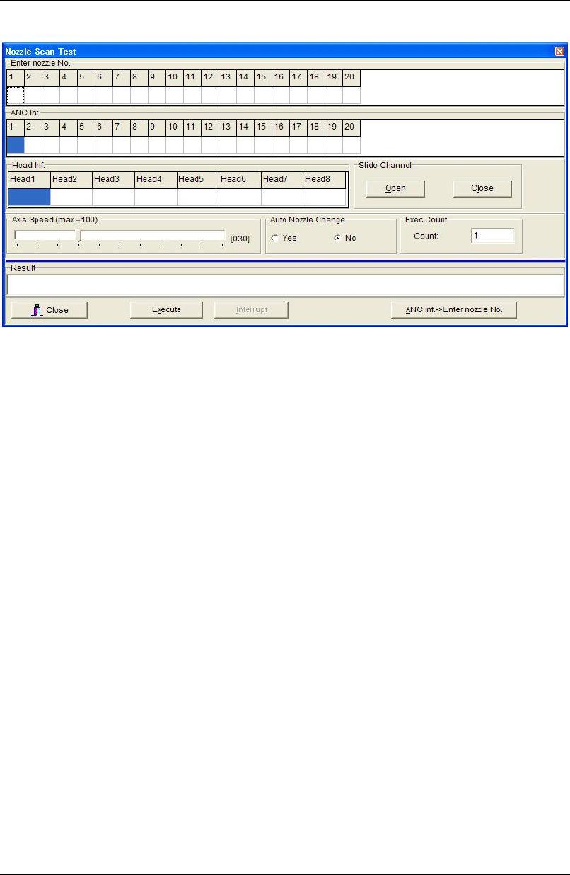 When the test finished, [ANC Inf.] field displays the identified nozzle number Also