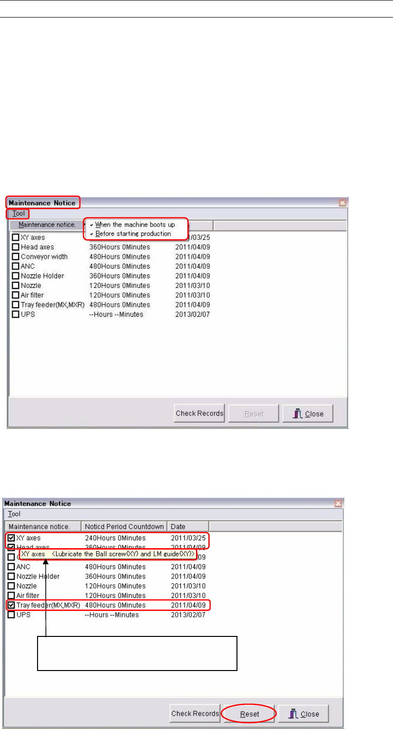 ① You can select when the maintenance notice is given. Select in order of Tool and