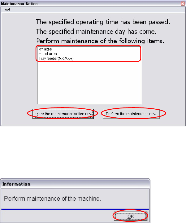 ① After the notified maintenances have been performed, reset the maintenance periods for