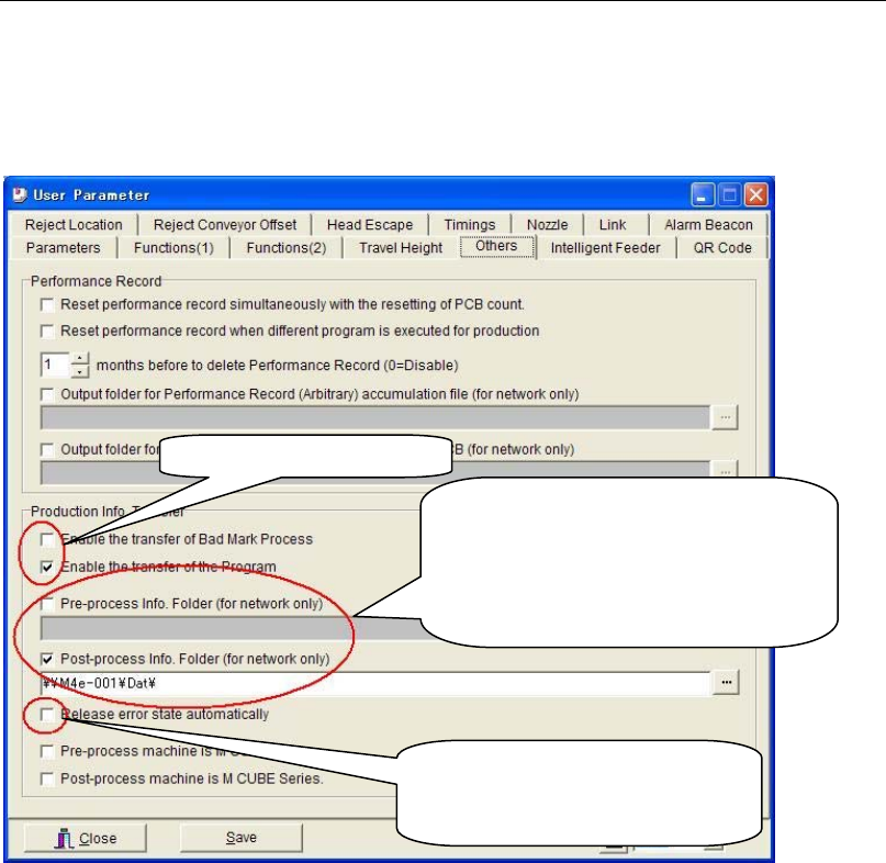 Chapter 11 Parameter Setting 11-17 11-1-12-2 Production Info. Transfer (optional) Menu: System>User Parameter>Others When using the Production Info.Transfer fu nction, the board tr a nsfer signals and the connectio…