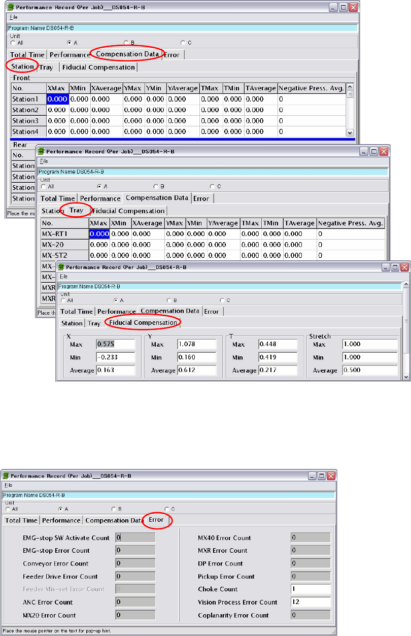 Chapter 12 Management Data 12-6 ■ Compensation (Per Job); X Max, X Min, X Average, Y Max, Y Min, Y Averag e, T Max, T Min, T Average, Negative Press. Avg., Stretch Max, Stretch Min, Stretch Average ■ Error (Per Job); EMG…