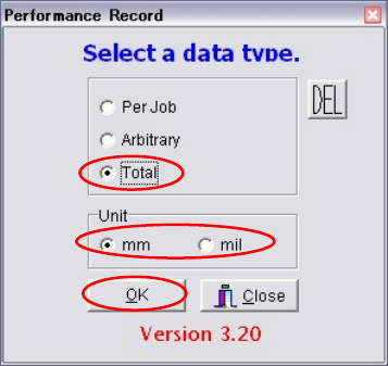 ⑥ Click <OK> button to display performance records. (If two or more files have been