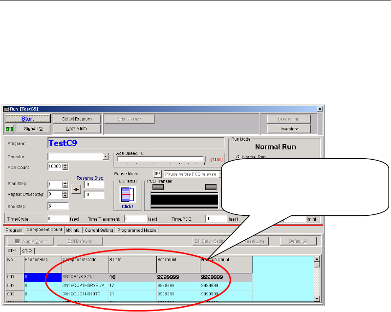 Chapter 14 Intelligent Feeder 14-27 14-4-2 Auxiliary Explanation for Relocatable Function ■ Displaying the Remaining Count in the Production Window When the relocatable function is used, the pickup points vary with the f…