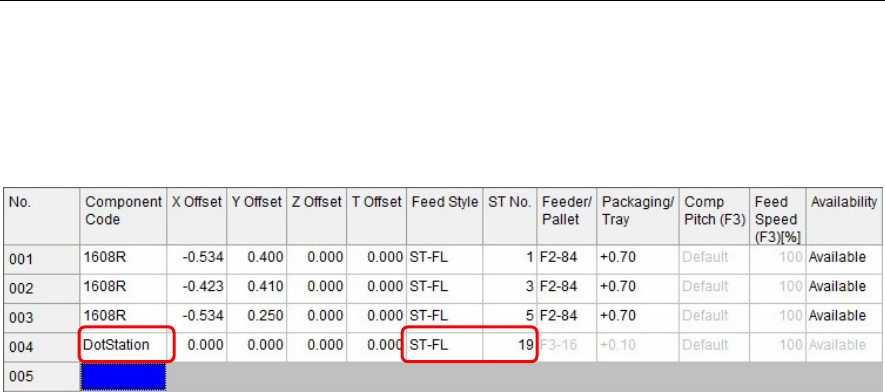When you have entered this “DotStation”, cells other than [Feed Style] and [ST No.] become invalid.