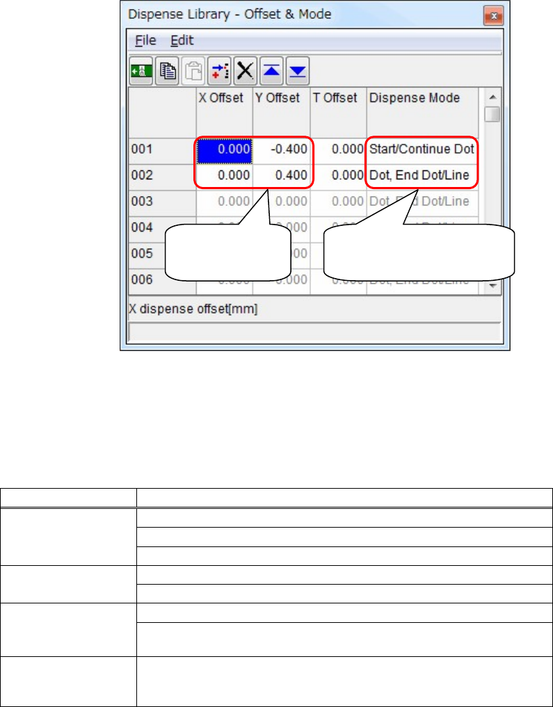 Offset Count The set offset count from [X] and [Y] of the reference dispense point on the