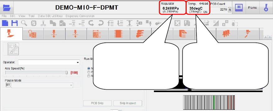 Clearance Adjust Value Adjust the clearance between the PCB and nozzle during dispensing.