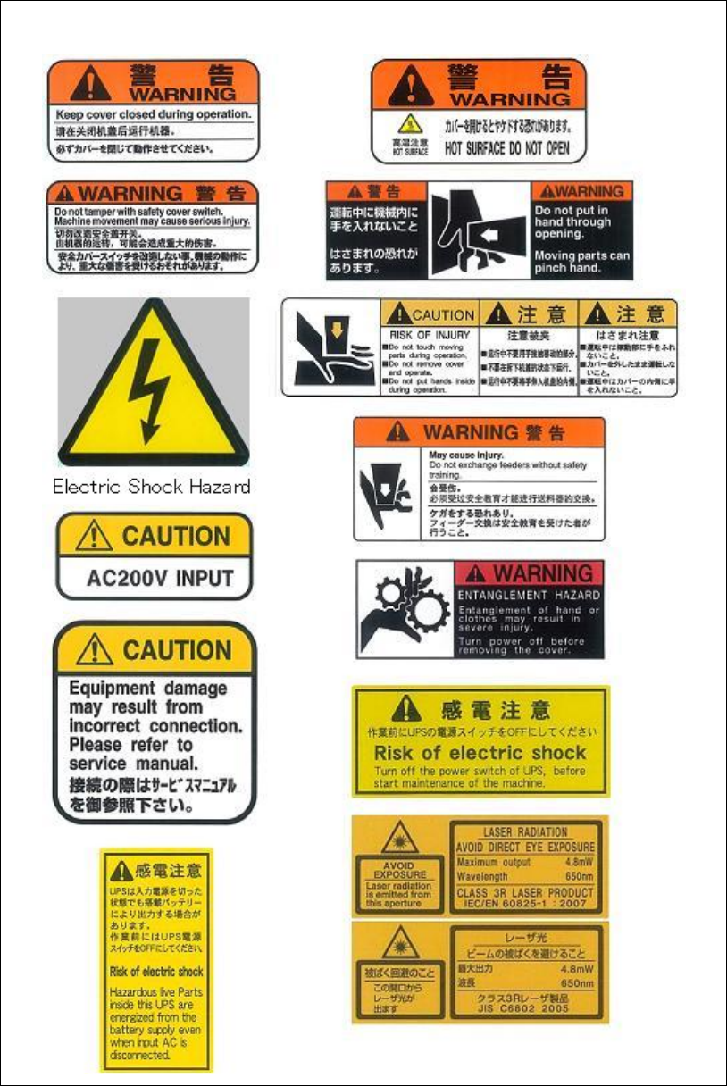 Different sections of the mounter have the following warning labels. Read the message on the label and always comply with its instructions.