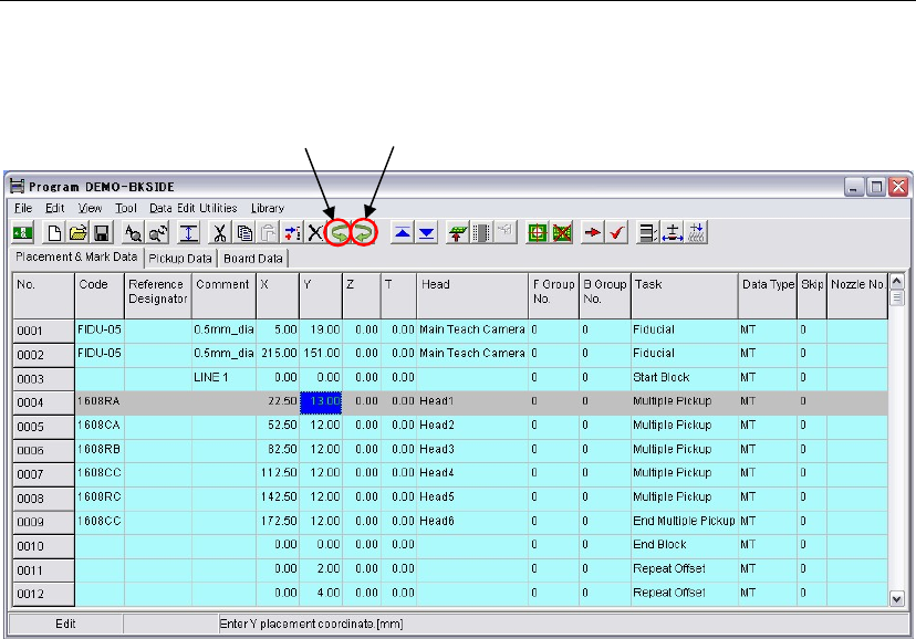 Chapter 2 Creating and Editing a Program 2-36 2-7-1-3 Bad Mark Function Menu: Program>Placement&MarkData>B_GroupNo. General Description The bad mark function permits the machine to cancel component placement …