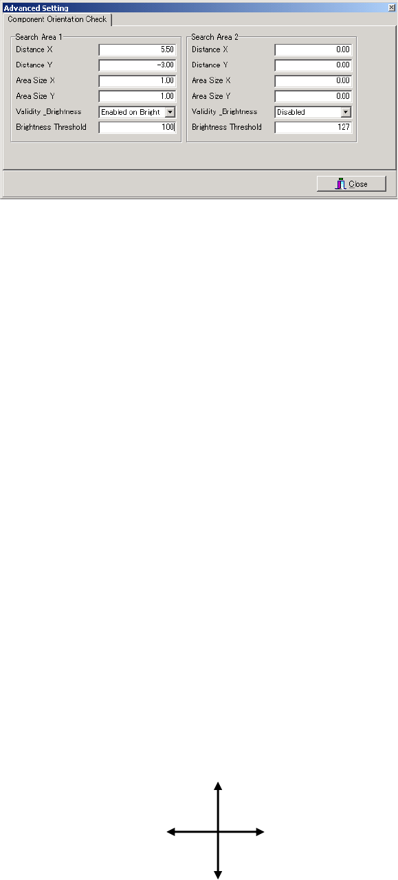 Chapter 5 Libraries 5-51 Component Orientation Check Setting Window Window: Search Area 1 / 2 Up to two sets of feature sear ch conditions can be set. If two sets are set, the orientation check result will be OK only whe…