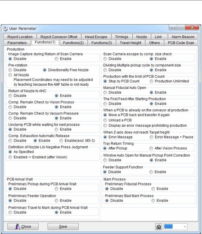 Menu: System>UserParameter>Parameters
