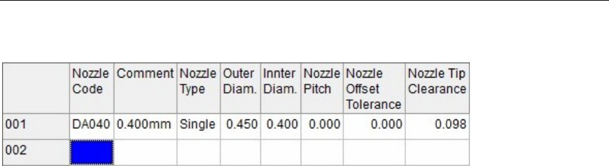 Nozzle Code Right-click this cell to select a nozzle code of the dispense nozzle data