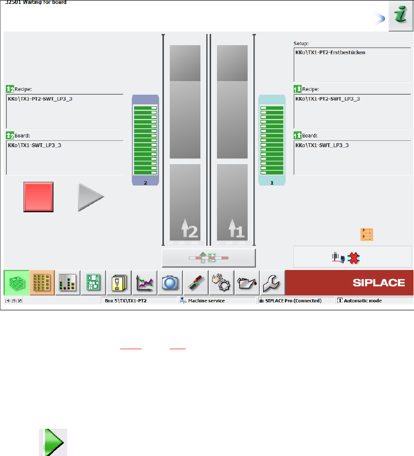 Instruction manual SIPLACE SX1/SX2 Edition V2 and V3 5 Tasks at the placement machine From software version SC.713.1 Edition 12/2020 5.3 Switching on t he SIPLACE line 237 5.3 Switching on the SIPLACE line 5.3.1 St artin…