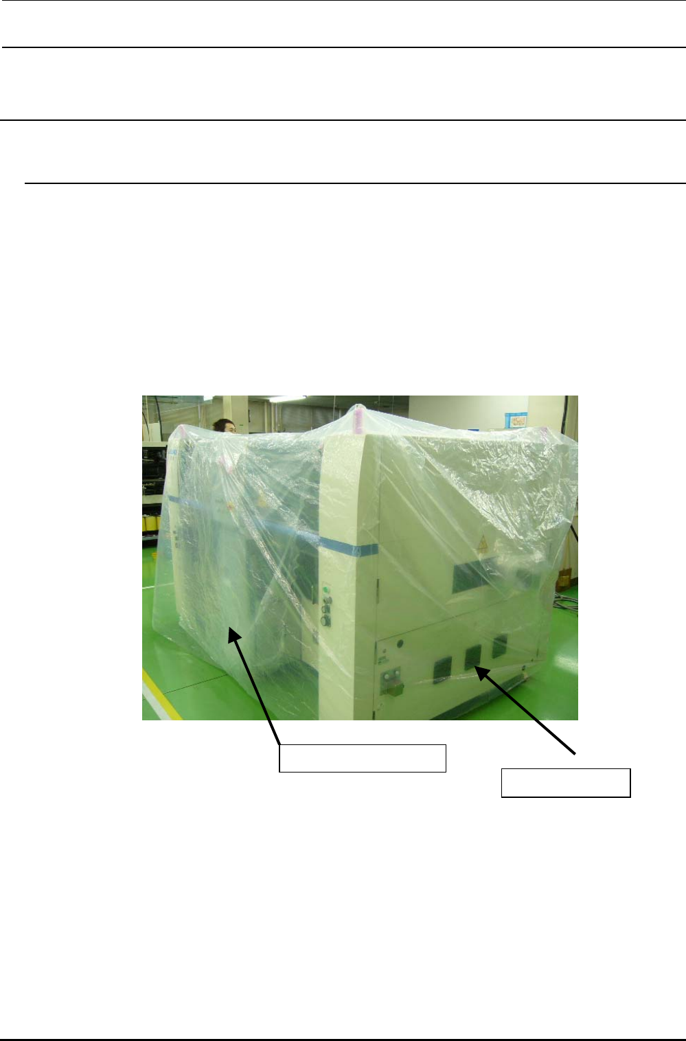Rev1.00 包装要领书 14 14. 主机整体 14-1. 主机整体 用聚氯乙稀塑料把机器整体包起来。 聚氯乙稀塑料布尺寸∶ 2 9 0 0 × 1800 × 1800 (横宽×进深×高) t0.05 (厚度) 运输时,请注意不要重压下图的护罩 FBC/RBC/SBL/SBR 部。避免护罩变形。 出货时,把下页的纸贴到护罩 FBC/RBC/SBL/SBR 的下图所示部分。 图 14-1-1 请在 4 个方向进行贴装。 反面也要进行贴…