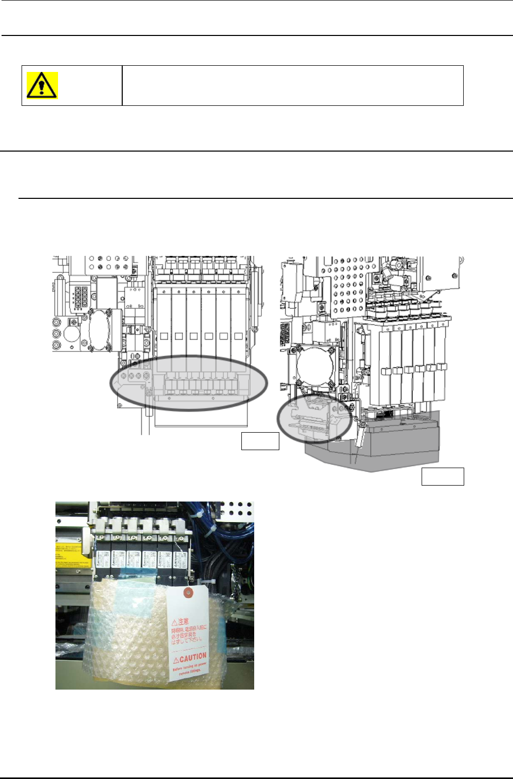 Rev1.00 包装要领书 2 1-2. 贴装头装置固定零件的固定 1-2-1. LNC 贴装头 Z 轴固定零件的固定 ① 限制挡板按下图所示贴在 ZM 止动器上。 ② 确认 Z 轴位于最上方的位置, 然后将止动器装在 Z 电动机的分接抽头部 (下图○部) , 使限制挡板碰 到皮带并进行固定。 (请把警示标签与带垫圈的内六角螺栓一起固定在右侧的一个位置。) ③ 确认 Z 轴已被固定,不会向上下方向移动。 图 1-2-1 LNC 贴装头 …
