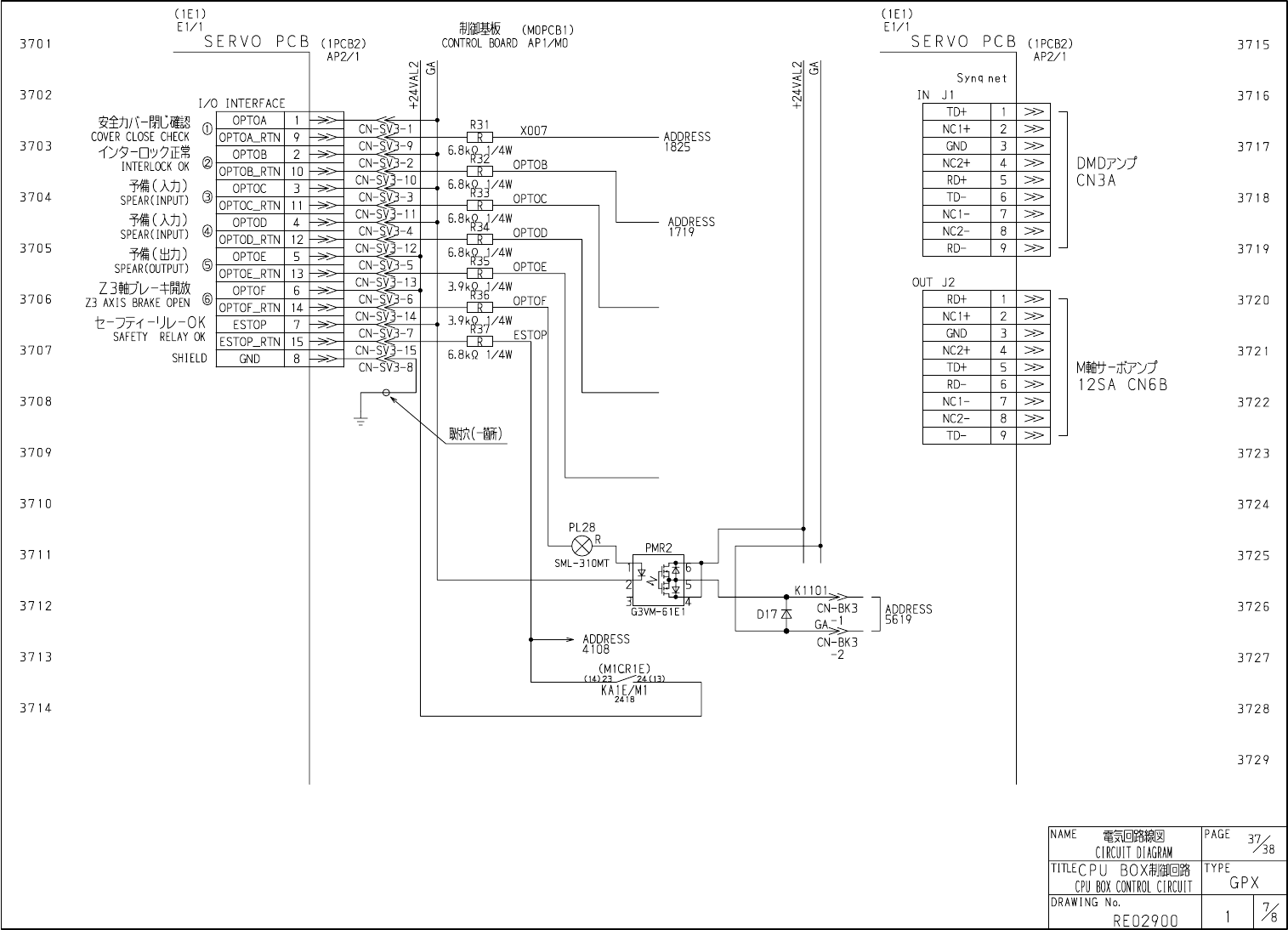 Downloaded at 2010/04/07 18:31 JST by 3PYM4216 DL#jdS6Xojc ( 1 E 1 ) 麵基板 El / 1 ( M 0 PCB 1 ) CONTROL BOARD API / MO S E R V O P C B ( 1 PCB 2 ) AP 2 / 1 370 1 ^ 5 3702 I / O INTERFACE 安全力八 - 閉 l : 確認 COVER CLOSE CHECK 心…