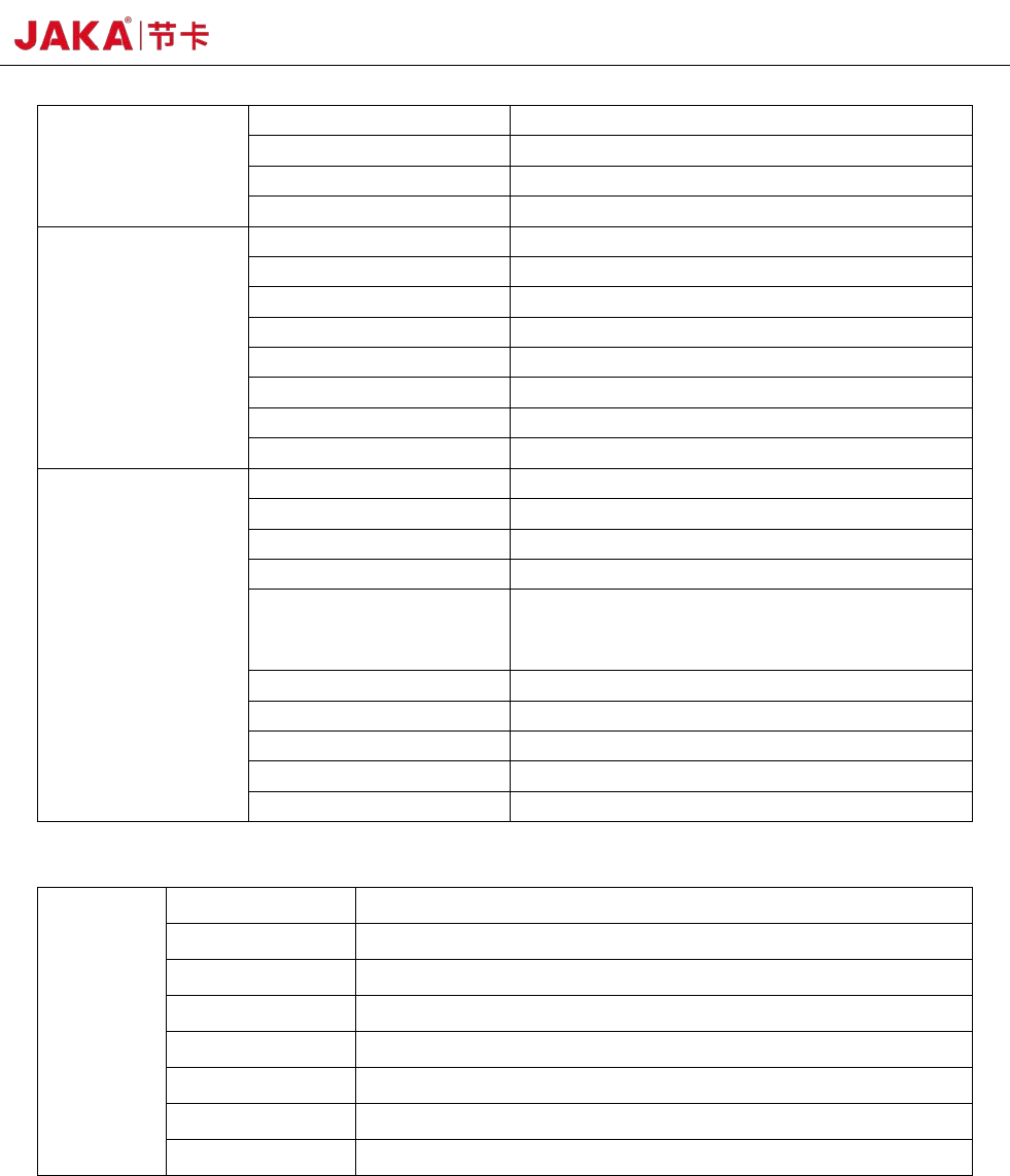 JAKA Zu 3 v1. 1 33 自由度 6 编程 图像化编程、拖拽编程 示教器类型 移动终端 ( PA D / 手机 ) APP 协作操作 根据 GB 1 1291.1 - 2 0 11 进行 协同操作 动作范围及速度 机械臂 动作范围 最大速度 关节 1 ±270 ° 180°/s 关节 2 - 85 °,+ 265 ° 180°/s 关节 3 ± 175 ° 180°/s 关节 4 - 85°,+26 5° 180°/s 关节…