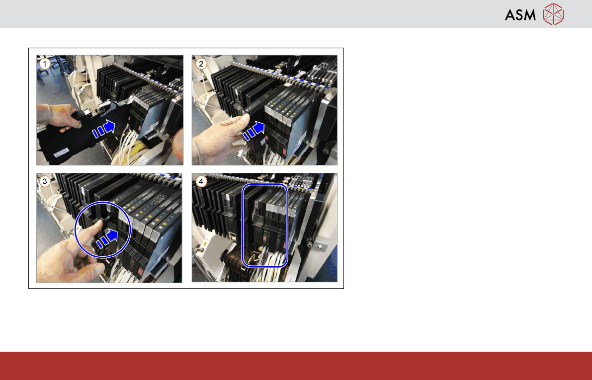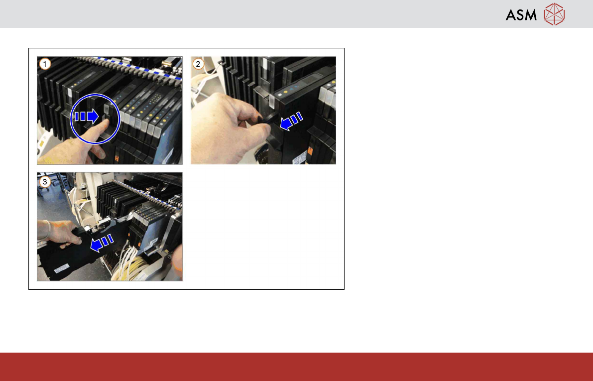 Operating the Feeder Module - Feeder Log Off and Removal 11 www.asm-smt.com 1.7 Feeder Log Off and Removal 1. Press the back of the removal handle. This handle will protrude and trigger the log off procedure. Once the st…