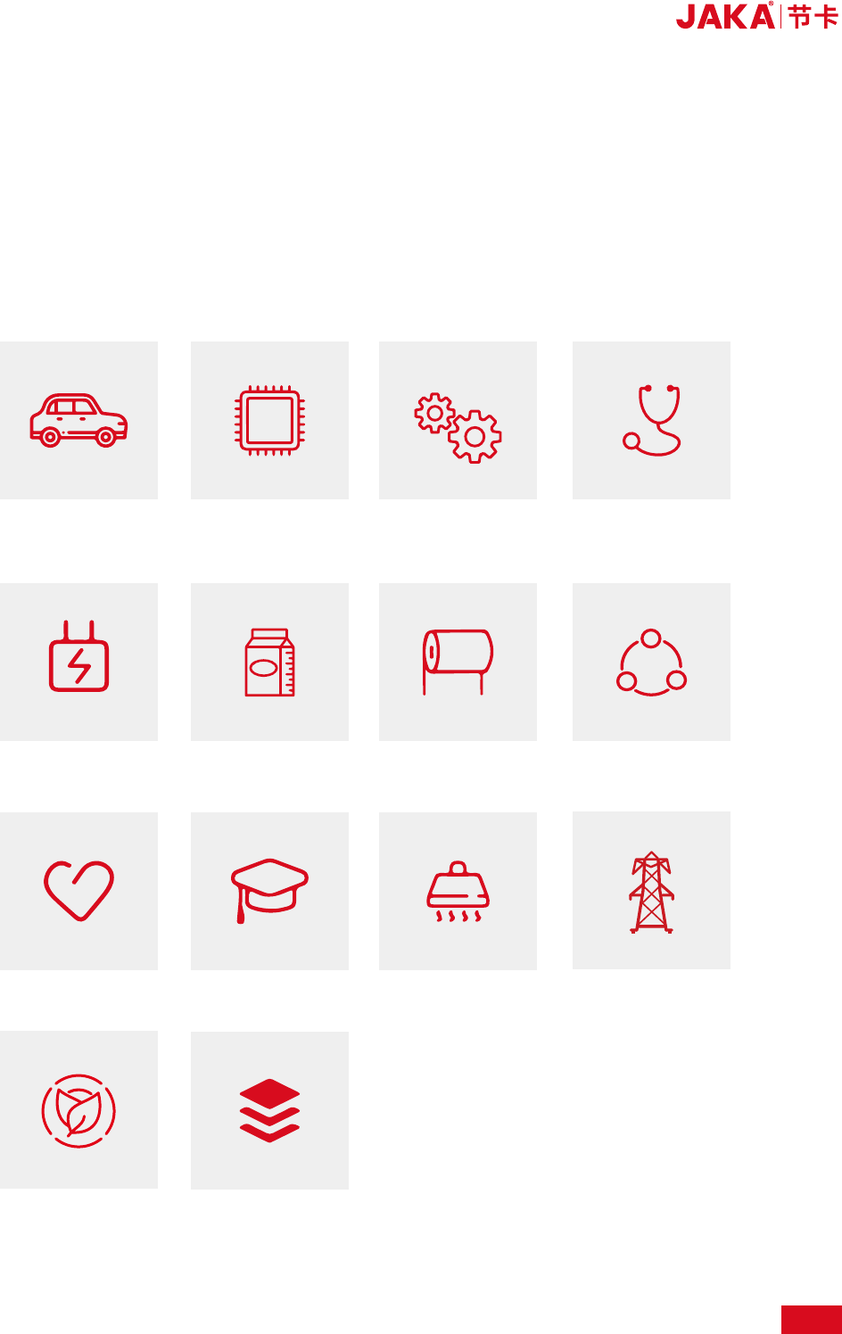 24 汽车及零部件 汽车及零部件是自动化水平较高的行业 , 但由于总装工艺相对复杂 , 且工序较灵活 , 传统机器人并不 适用。 节卡系列协作机器人具备安全灵活、 共融协作等特点 , 不仅能应对繁杂的工艺 , 还能提高工厂整 体的生产效率。 检测应用 锁螺丝应用 视觉抓取应用 上下料应用 应用类型