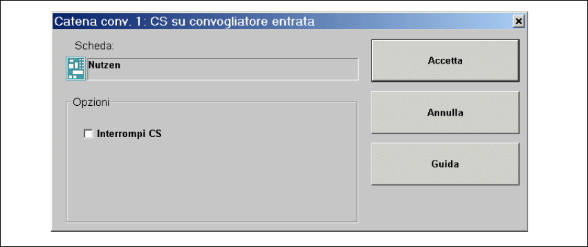 Fig. 3.2 - 3 Dialogo "Catena convogliatore 1: circuito stampato sul convogliatore di processo1" (esempio S-25 HM)