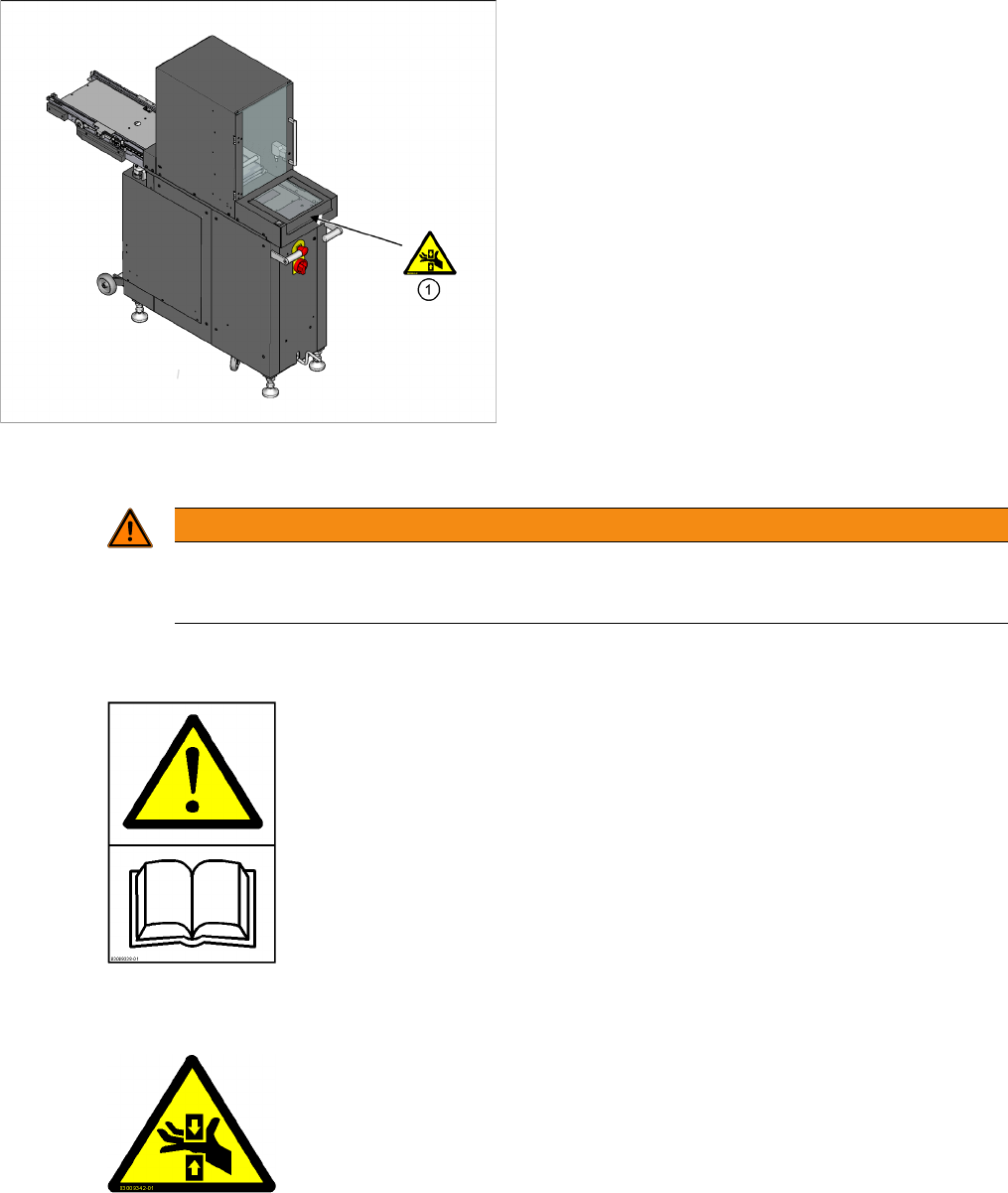 Betriebssicherheit 2.2.2 Warnschild am Non-Stop Modul (nur WPC6) Warnschilder Bedienungsanleitung SIPLACE WPC5/WPC6 19 2.2.2 2 . 2 . 2 W a r n s c h ild a m N o n - S t o p M o d u l ( n u r W P C 6 ) Warnschild am Non-S…