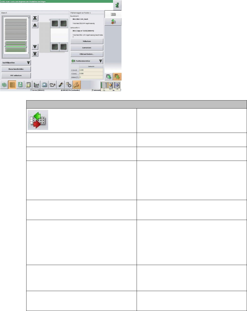 Belegungsprüfung Startet die Maschinenfunktion zur Überprüfung der Magazinträger.