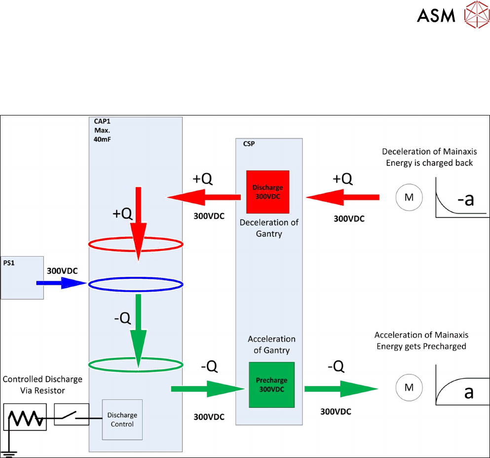 当主轴加速(悬臂提速)需更多能量时,可以从电容储能电池CAP(由300VDC/ -Q预充电)获取能