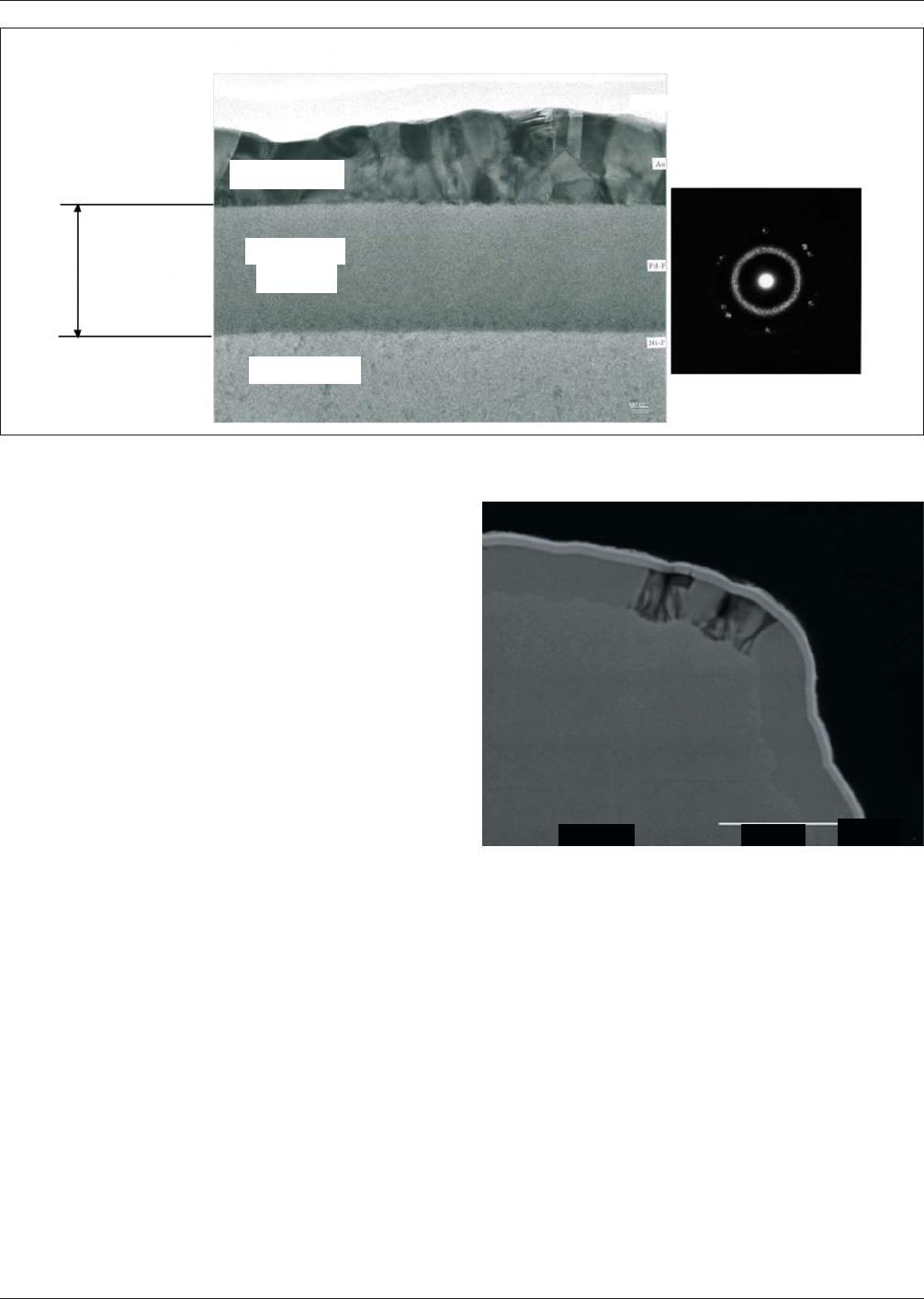 [The Palladium-Phosphorus film is amorphous and very uniform whereas the gold (Au) deposit is crystalline in nature.]