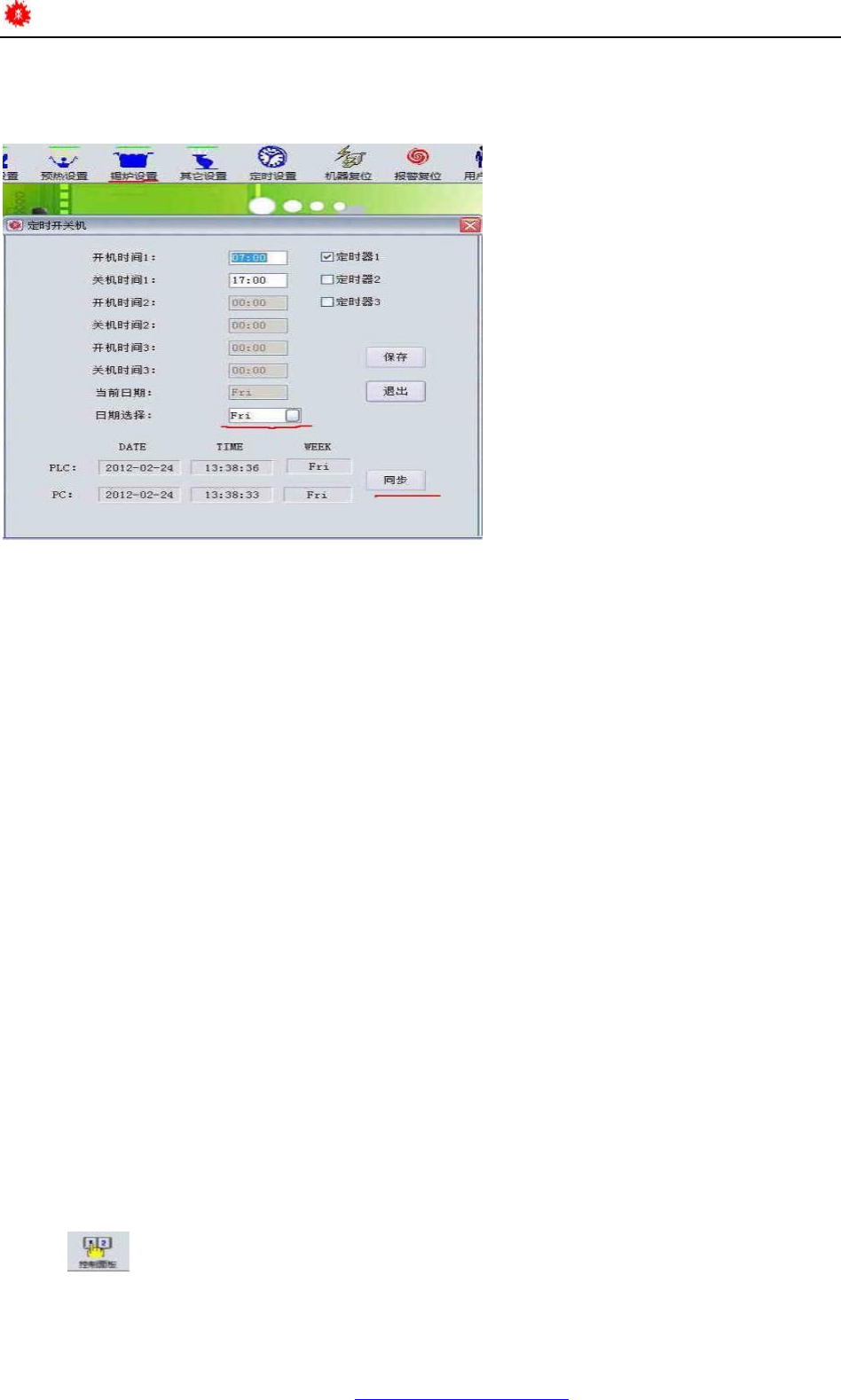 系统允许操作者设定一周内每天开关机时间,每天最多允许开关机 3次。首先选择日期,即星期