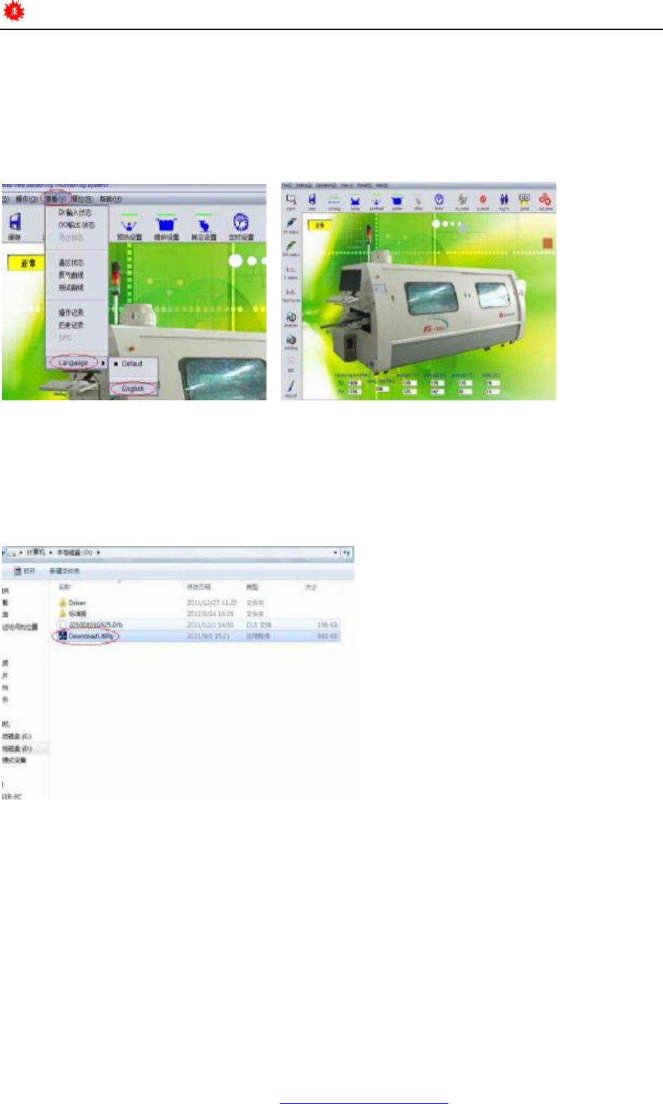 SUN EAST 电脑波峰焊用 户手册 10>Language 切换操作界面 的语言种类。 点击 “ 查看〞菜单中 “ Language 〞 ,选择 “ English 〞界面切 换为英 文界面;点击 “ Default 〞可切换 回 中文界面。 附: Ⅰ: PLC 程 序重装 1 〕找到程 序导入工具, 双击工具图标 。 2 〕单击 “ 文件〞按钮, 翻开文件;选择 “ DLB 〞格式 文件,翻开。 28 PDF 文件使用 &q…