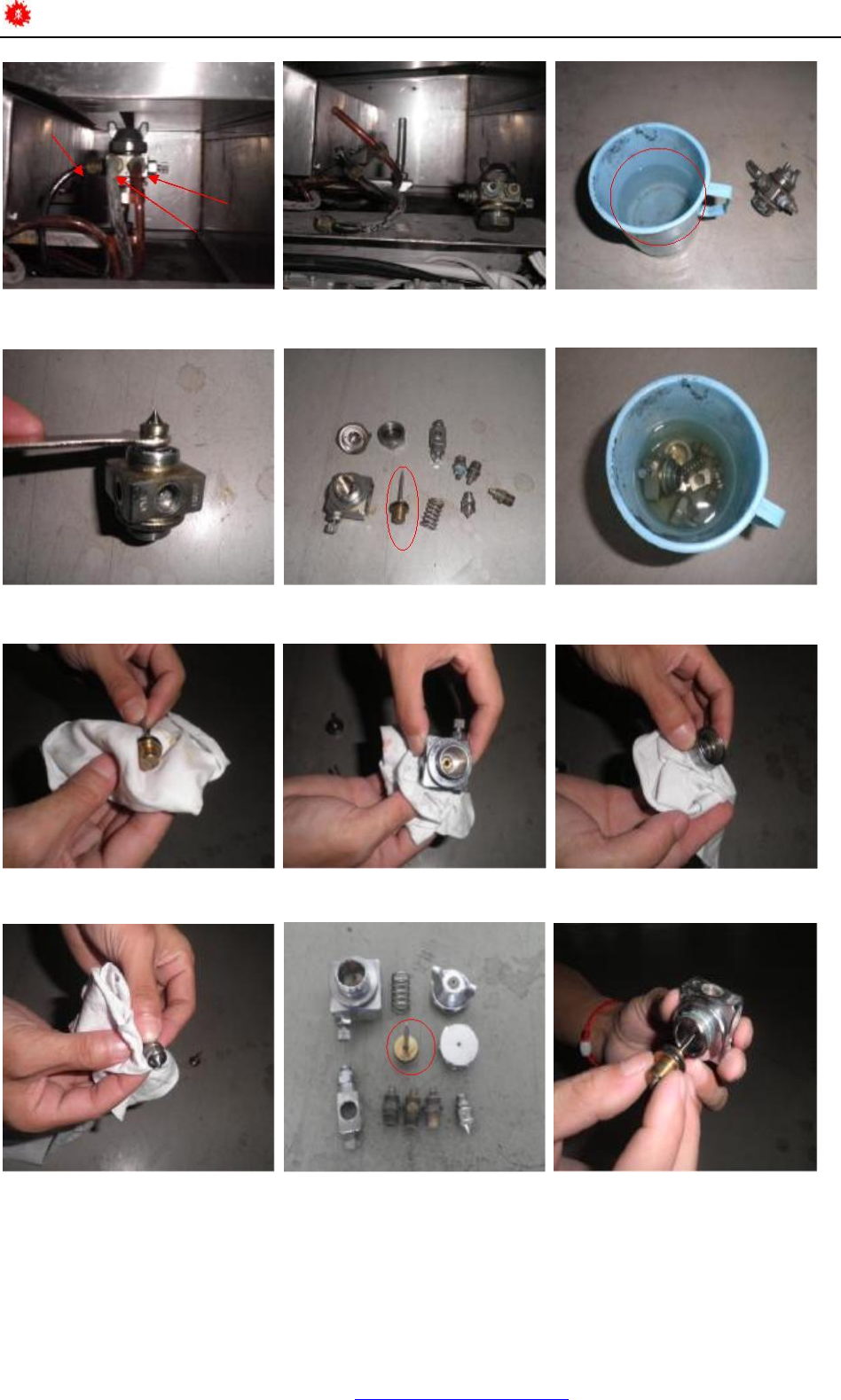 ( 5)注意:喷嘴顶针不可浸泡,用白碎布蘸取酒精擦干净即可;如图五、七所示。