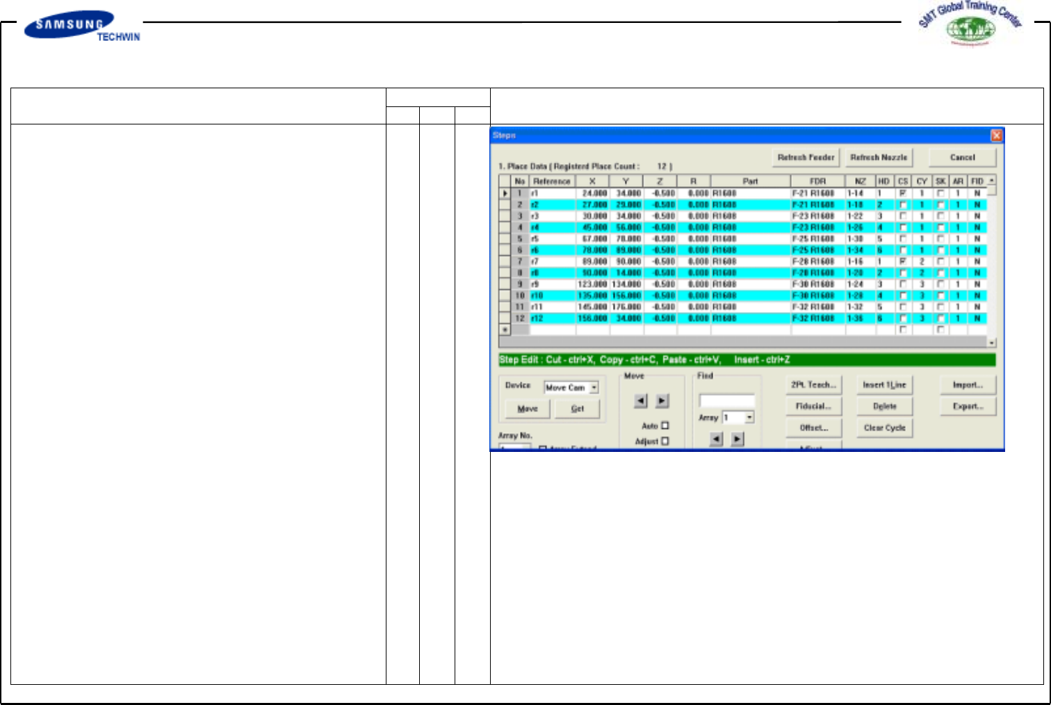 Operating Manual MODEL Reference Figure CP-45/55 Operation Process 3.3-3) Step (Place Information Register) Input a place po int of par t. v Input the Reference. R 1 ,R 2 ,R 3 ,R 4 ,R 5 ,R 6 ,R 7 ,R 8 , R9, R10, R11, R12…