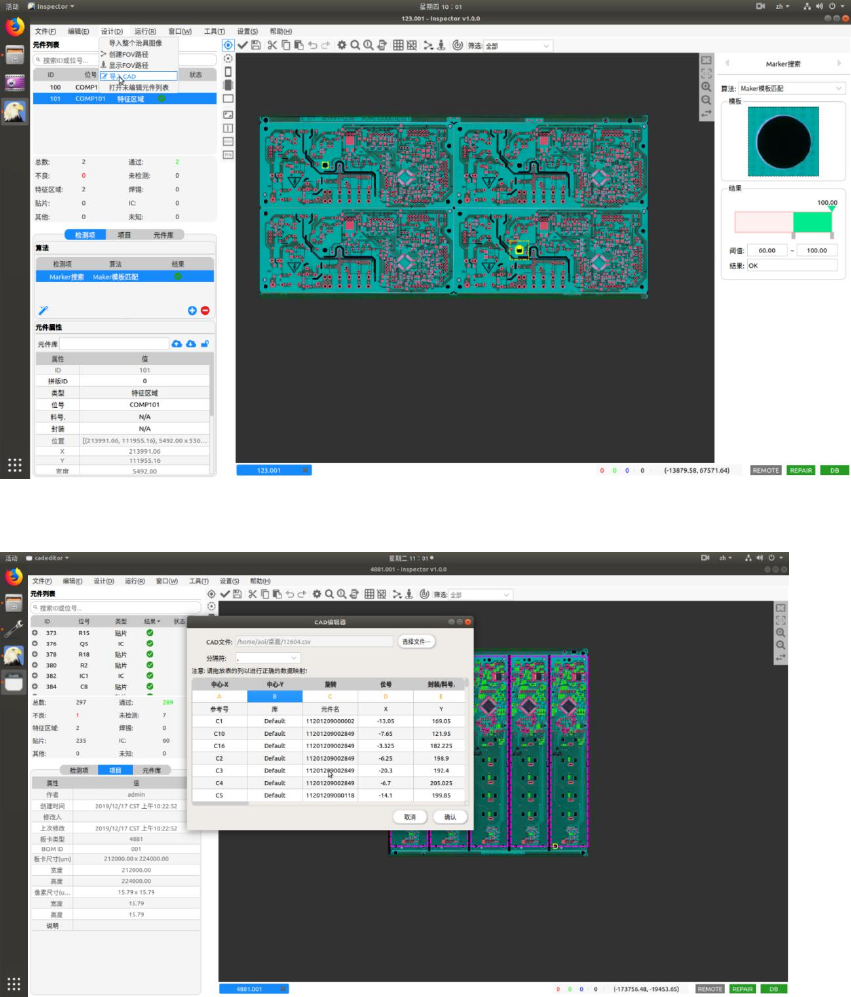 打开软件-新建程序-基板信息设置-扫描整版图片-制作 mark-导入 CAD-编辑器件-优