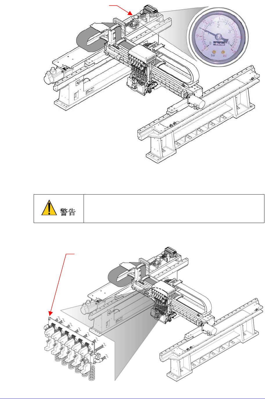 通过设备前面Air Panel的Air Pressure Gauge检查供给空压是否适合于设置压力