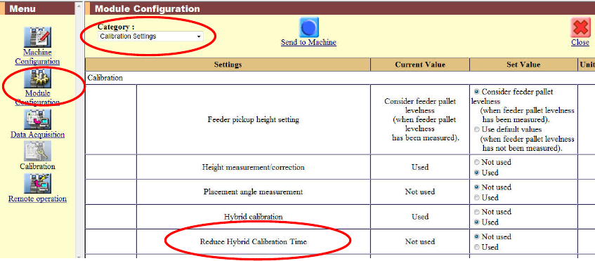 "Used" for [Reduce hybrid calibration time] in the [Calibration Settings] category in the