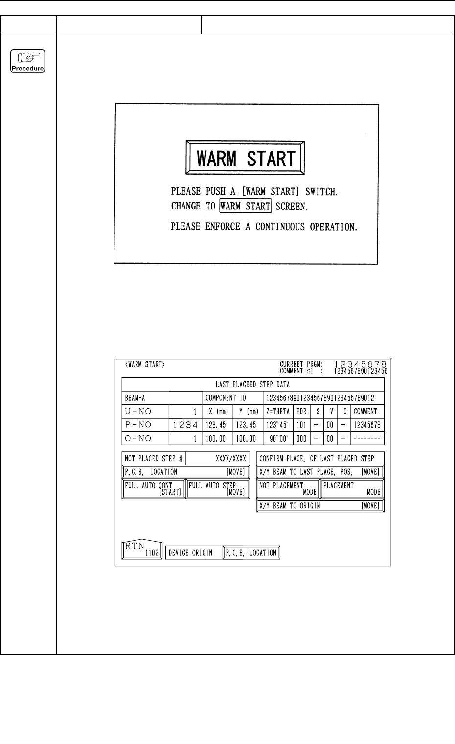 (3) Press the [WARM START] button.