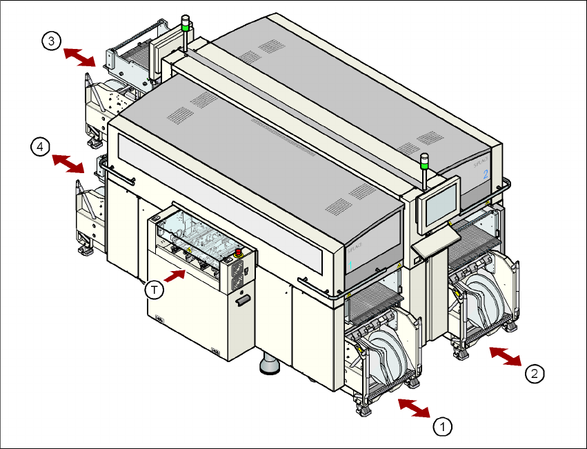 3.10 - 1 ábra Alkatrészkocsik helyei, SIPLACE X-sorozat