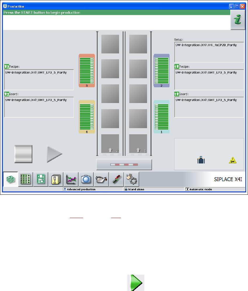 5.3 - 1 ábra "Gyártás" nézet az állomásszoftver (például a SIPLACE X4I) betöltése után