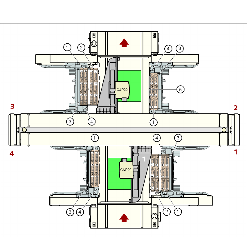 kocsi behúzókészüléken van rögzítve. A SIPLACE X4-, X3- és X2-automata esetén egy második