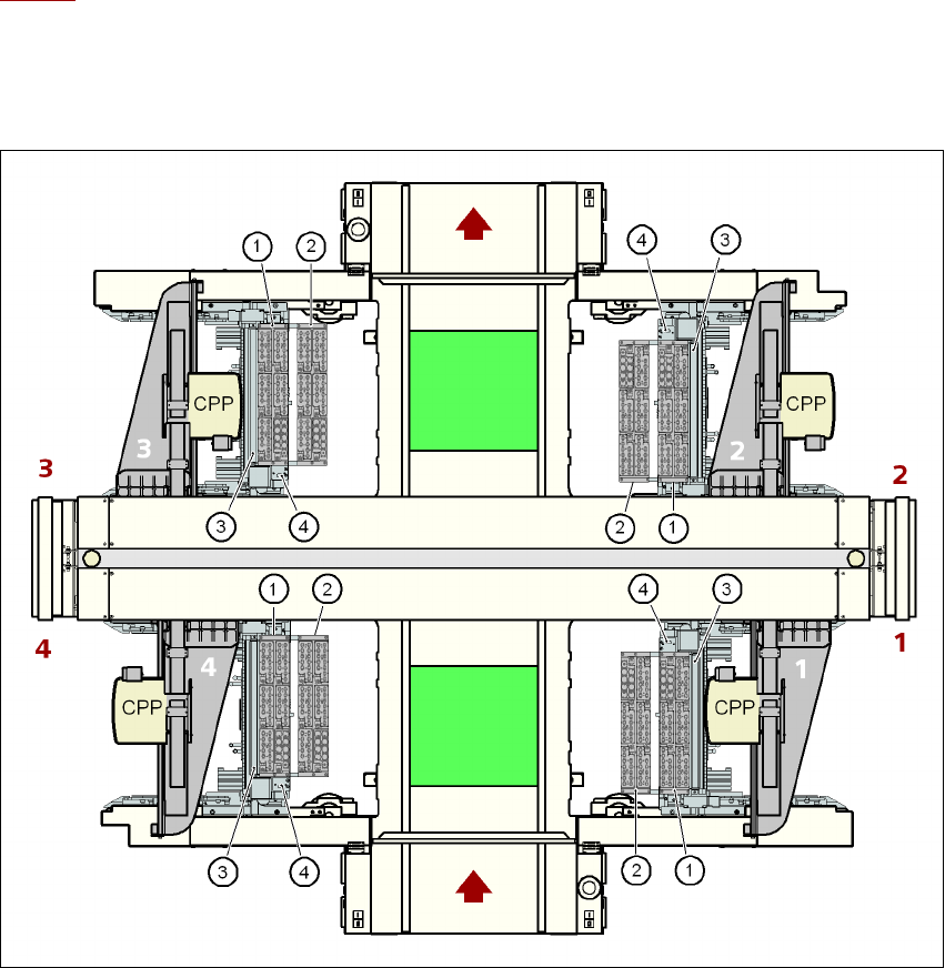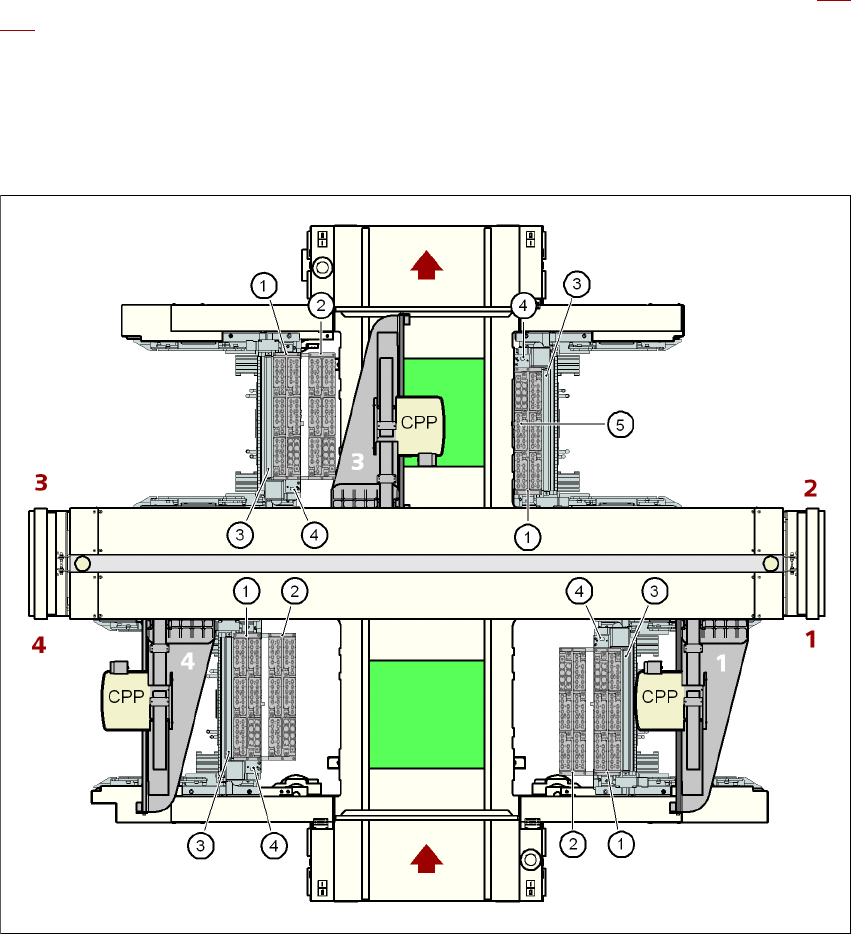 Állomásb ő vítések Üzemeltetési útmutató SIPLACE X-sorozat Pipettacserél ő Az SR.70x.xx szoftververziótól Kiadás 01/2011 368 6.1.2.5 A SIPLACE MultiS t ar pipett acserél ő jének helyzete a X3-automatán Az 1., 3. és 4. he…