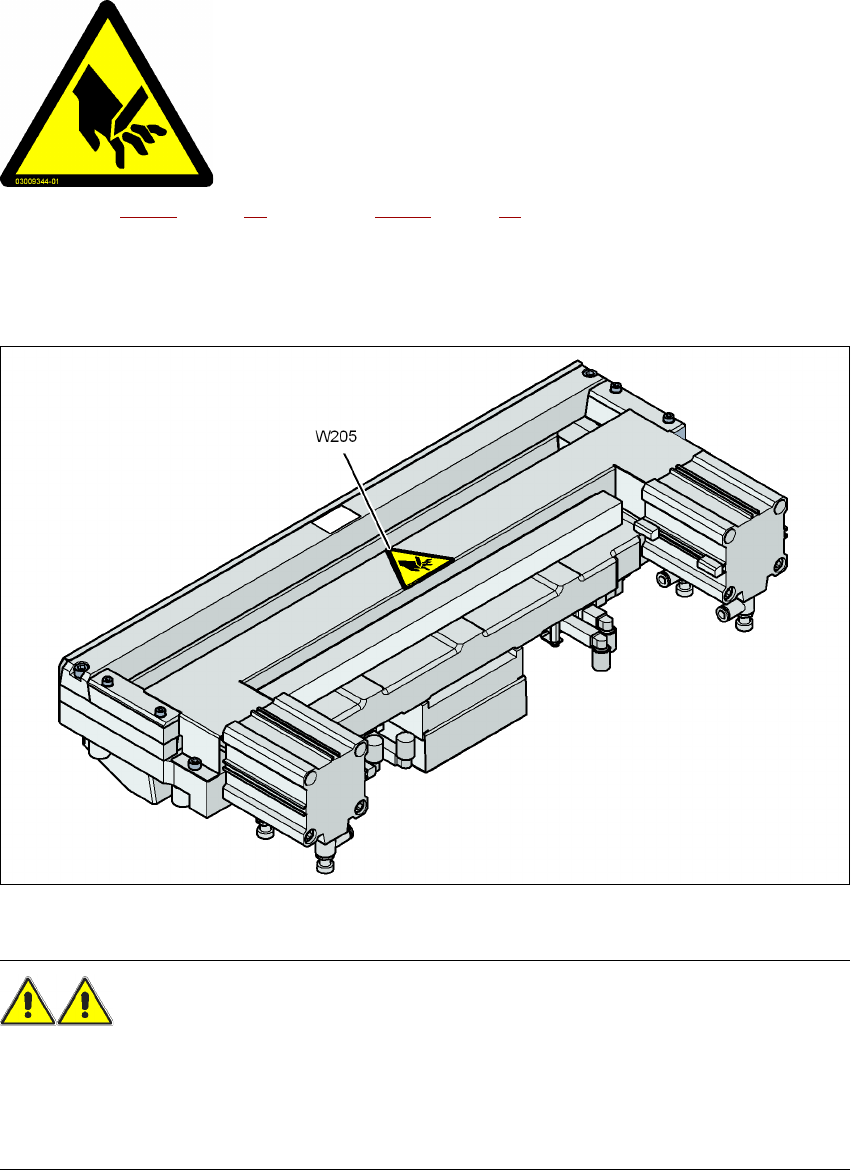 2.2 - 4 ábra W205 figyelmeztető tábla a hevedervágó készülék felső oldalán