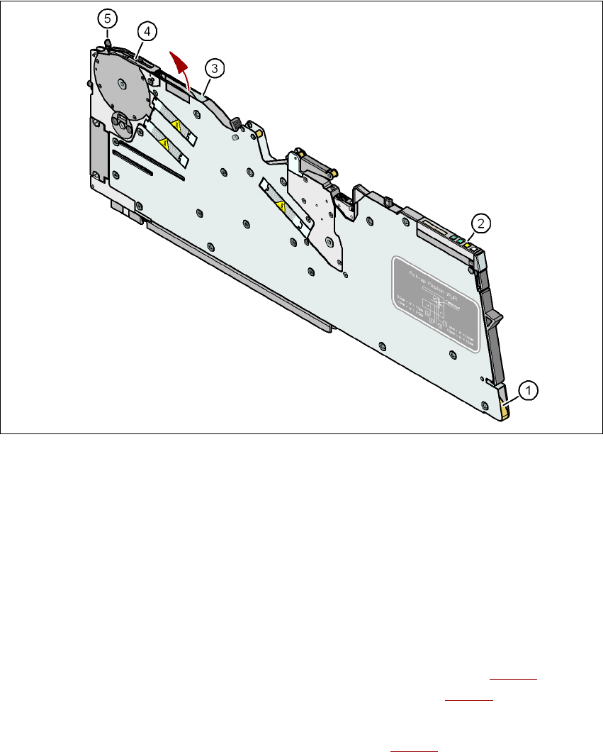 Üzemeltetési útmutató SIPLACE X-sorozat Feladatok a gépen Az SR.70x.xx szoftververziótól Kiadás 01/2011 Szállítók felszerelése 333 5 5.10 - 5 ábra A hevederszállító átvev ő ablaka (1) Heved ertámasz, kivehe t ő (lásd a 5…