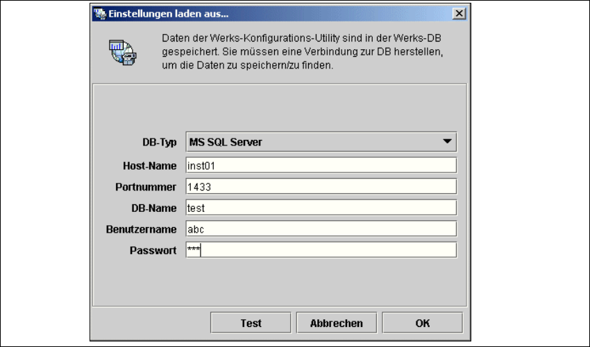 Werks-Datenbank herstellen, um die Daten abrufen zu können.