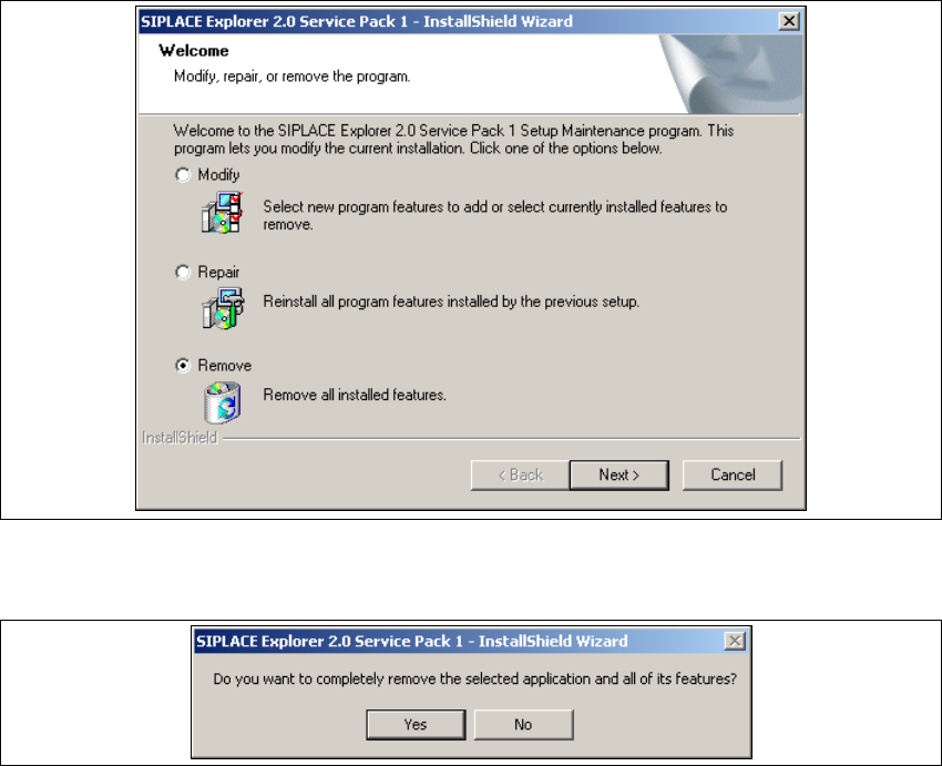 Installations- und Konfigurationsanleitung SIPLACE Explorer 5 Deinstallation