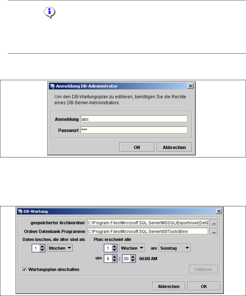 Um den DB-Wartungs-Plan zu starten bzw. zu editieren, muss der Benutzer über Datenbank-