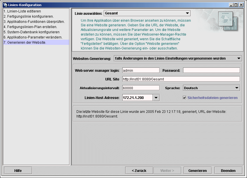 → Um Ihre Fertigungslinie im Webbrowser zu überwachen, müssen Sie eine Website generieren.