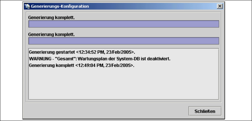 Generieren. Es öffnet sich ein Informationsfenster mit der Anzeige der Generierung der