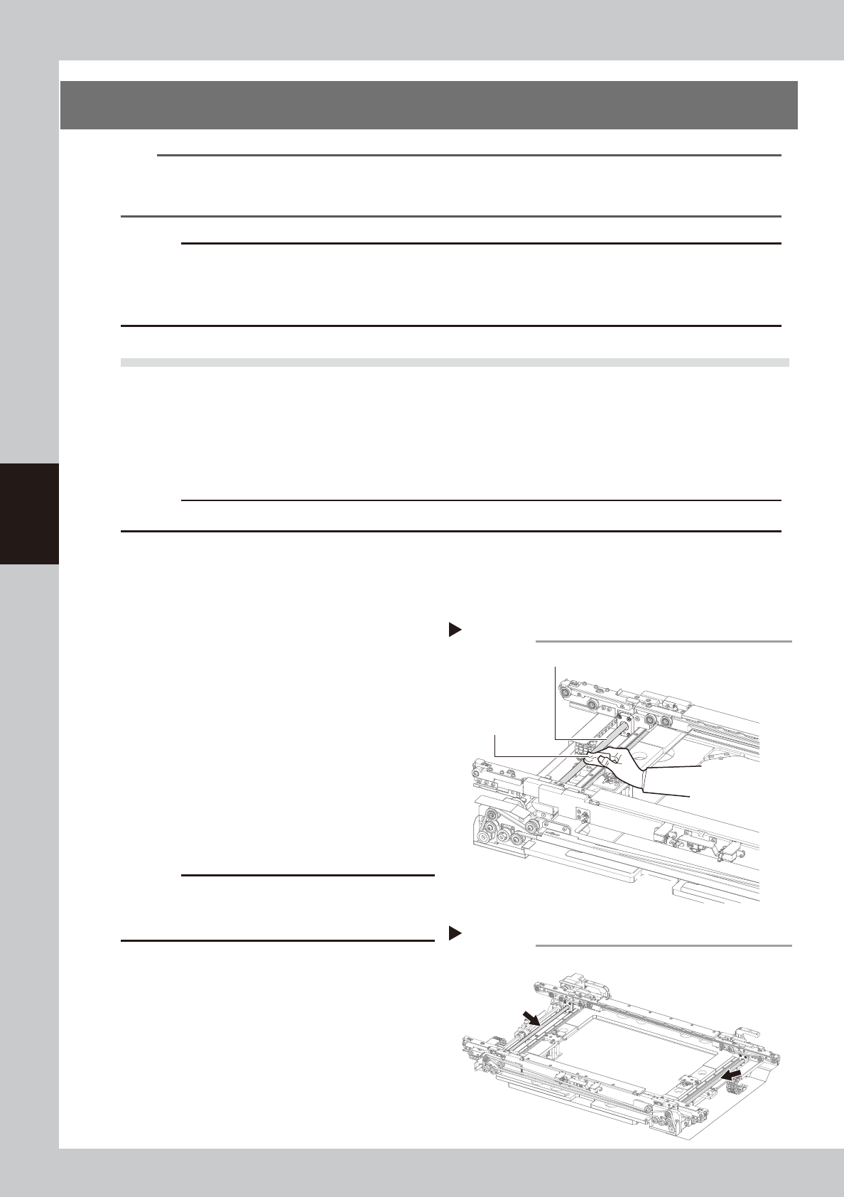 • If abnormal noise is emitted from the ball screw or guide of each axis, then contact our sales representative for