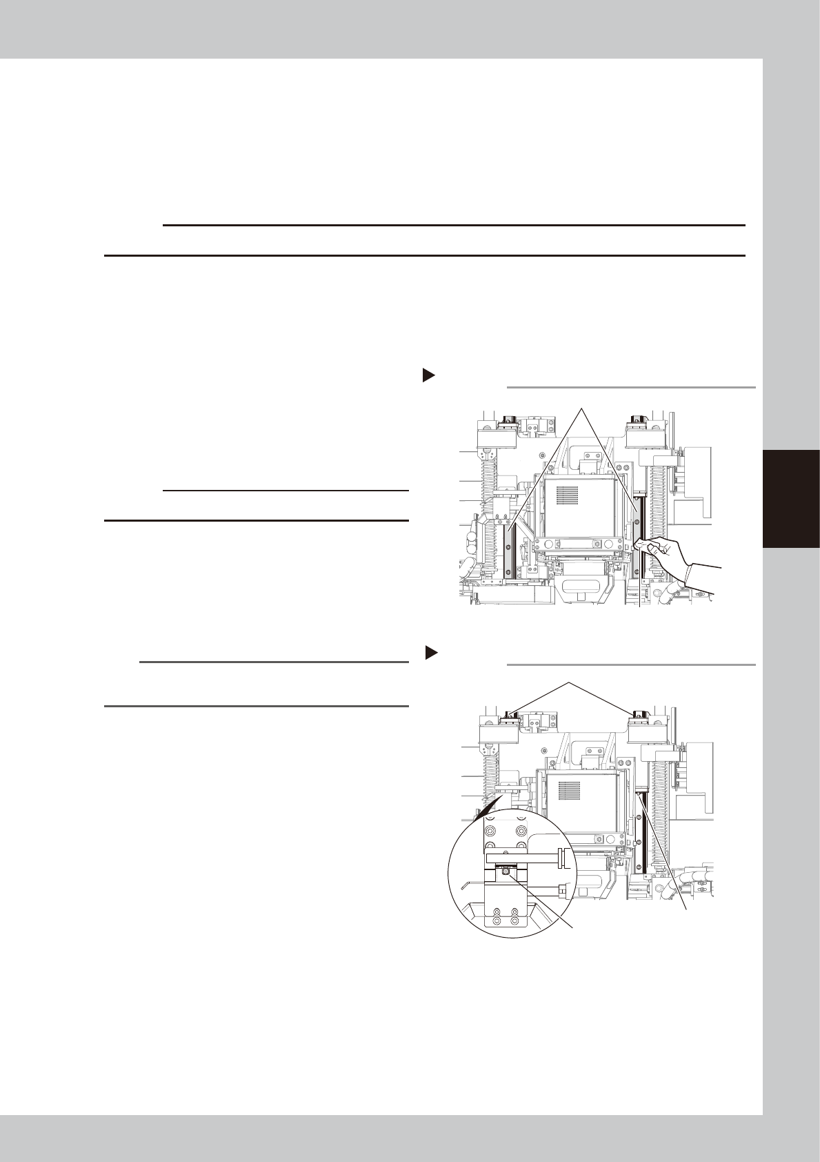 • If abnormal noise is emitted from the ball screw or guide of each axis, then contact our sales representative for