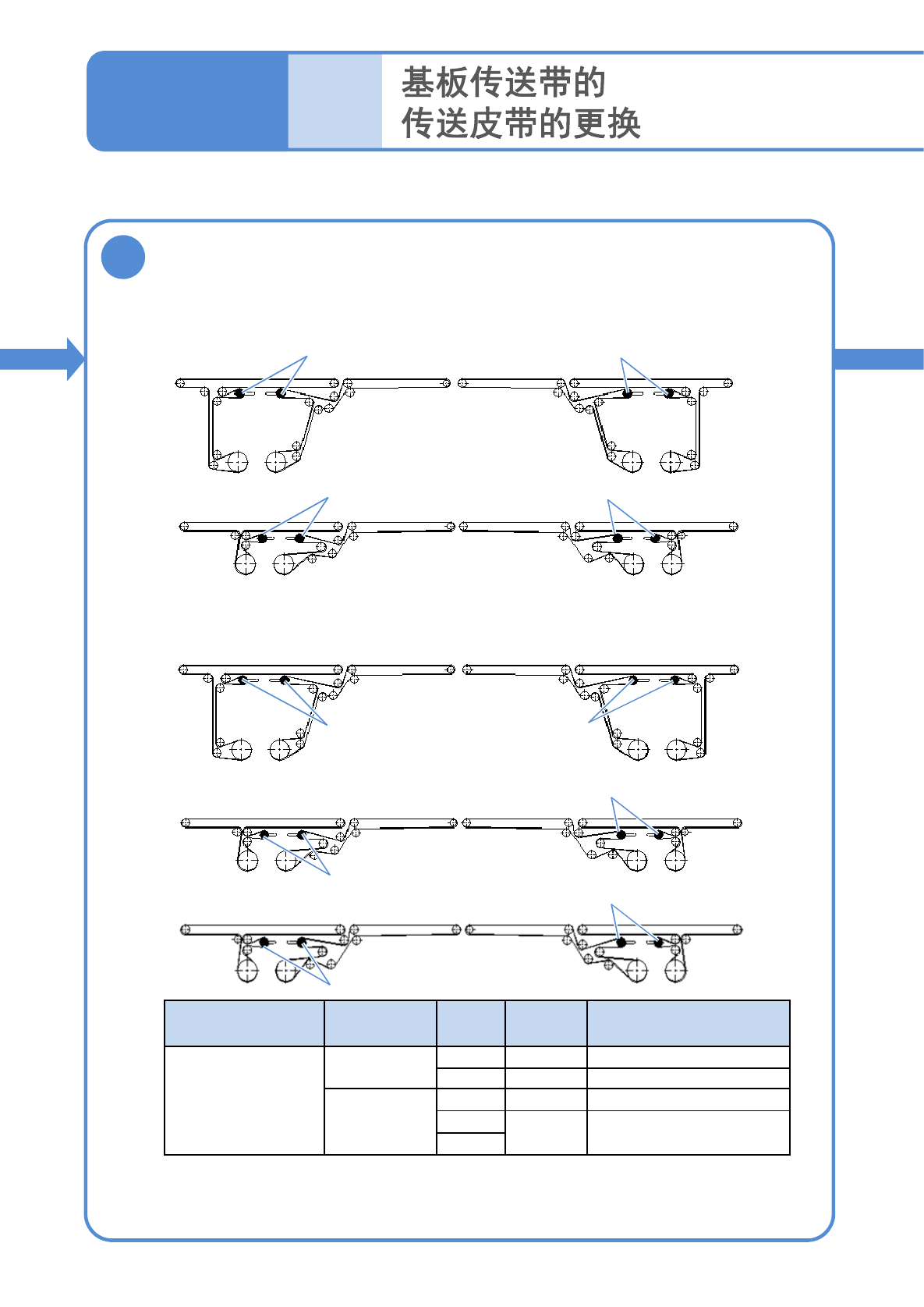 ●安装皮带时,使皮带正面为基板传送面。