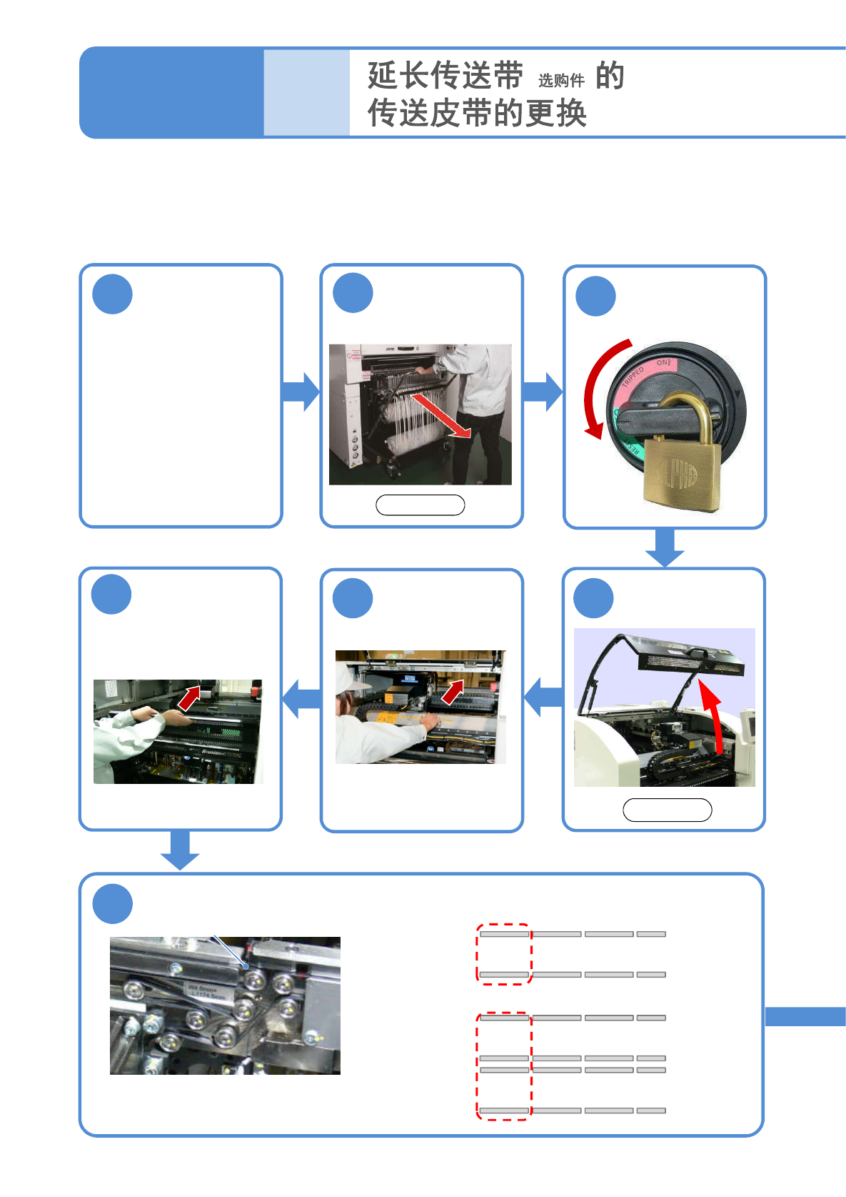 当在下游工序上存在延长传送带时的更换方法,在这里通过前侧的作业进行说明。